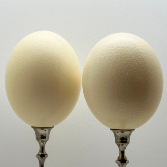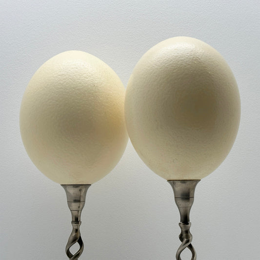 Curiosa Emoe Ei Opstelling – Luxe Set van Natuurlijke Eieren op Nikkel Kandelaars, Handgemaakt (2024)