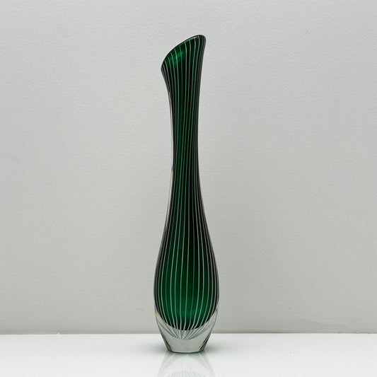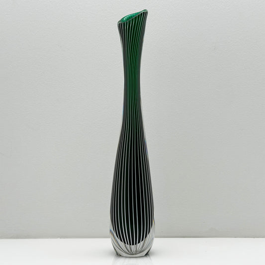 Handgeblazen Groene Zebra Vaas | Vicke Lindstrand voor Kosta Boda | Scandinavisch Design